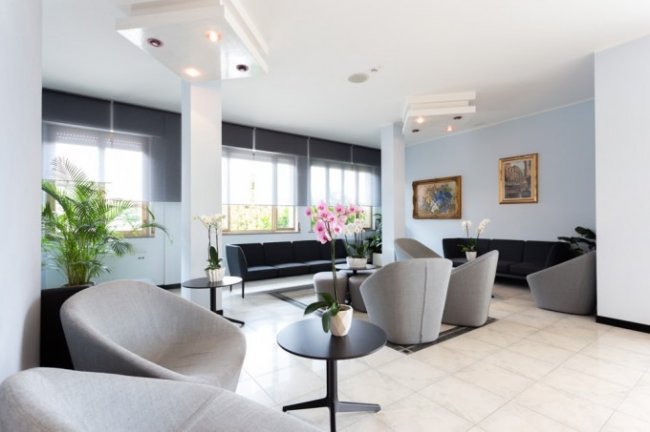 Dispone inoltre di un'ampia hall, bar, salottino TV, giochi per bambini, sala giochi, palestra, ampio terrazzo vista mare.